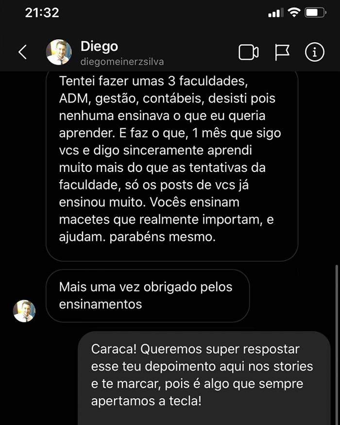 Seguir com a gente nas consultorias individuais onde, o próprio professor Gilberto acompanhará sua empresa e analisará os dados em conjunto com você. Chame a  gente no botão whatsapp logo aqui à direita.